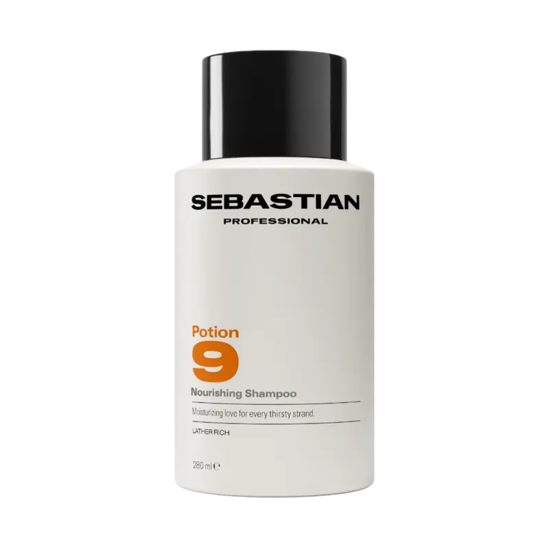 De Sebastian Professional Potion 9 Nourishing Shampoo 280ml is een rijke, hydraterende shampoo die droog en uitgedroogd haar weer zacht, soepel en veerkrachtig maakt. De formule bevat een voedende mix van oliën en botanische extracten, waaronder saffloerolie, babassu olie, jojoba olie, sesamolie, olijfolie, rijstkiemolie, teunisbloemolie, cactus- en bamboe-extract, die het haar diep reinigen én herstellen zonder het te verzwaren. Het krachtige surfactantcomplex verandert bij contact met water in een romig, luxueus schuim dat het haar grondig reinigt en klaarmaakt voor styling. Perfect voor haar dat behoefte heeft aan een intensieve reset en een voelbare verzorgingsboost.