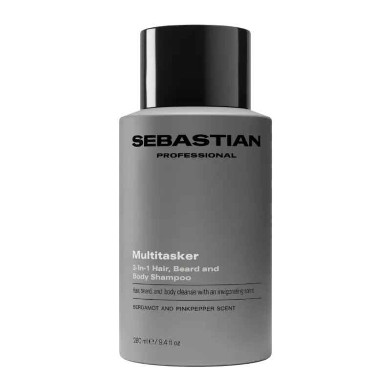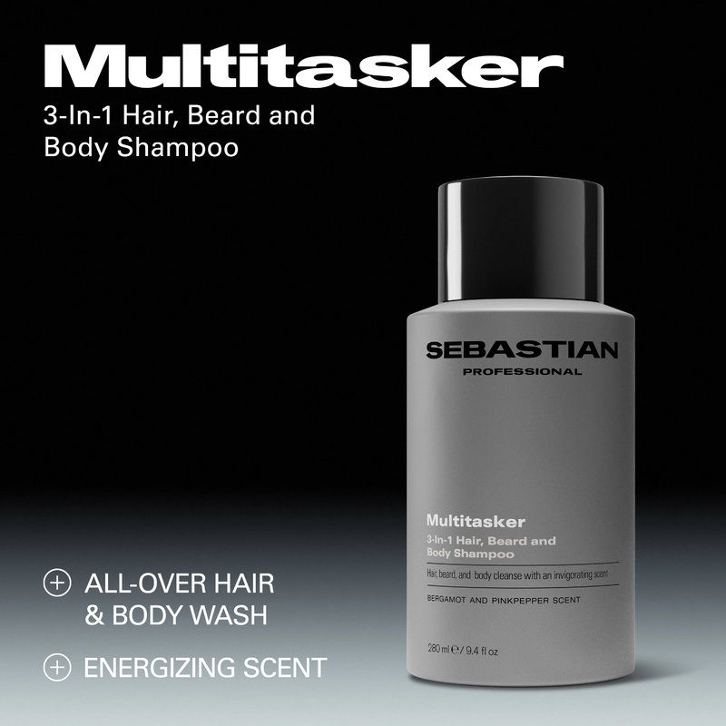 De Sebastian Professional Multitasker for Men 3-in-1 Hair, Beard and Body Shampoo 280ml is de ultieme alles-in-één reiniger voor mannen die snel resultaat willen zonder concessies te doen aan kwaliteit. Deze veelzijdige formule reinigt het haar, de baard en het lichaam in één beweging en verwijdert onzuiverheden zonder de huid uit te drogen. De frisse geur van bergamot en roze peper zorgt voor een energieke, mannelijke ervaring onder de douche. Ideaal voor dagelijks gebruik én voor mannen die houden van gemak, frisheid en efficiëntie.
