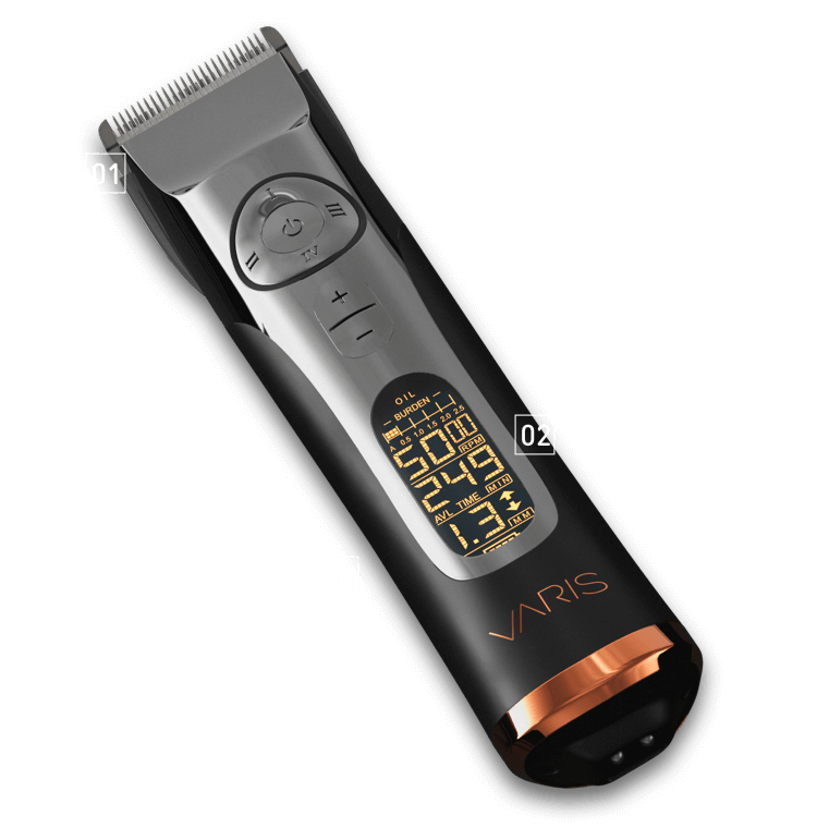 De Varis Clipper is geschikt voor zowel accu- als netvoeding. In slechts 3 uur is de Varis Clipper klaar voor 250 minuten snoerloos gebruik. De resterende acculading lees je super makkelijk af op het lcd-display. Op dit display staat ok een olie-indicator. Zo zie jij precies wat er speelt.