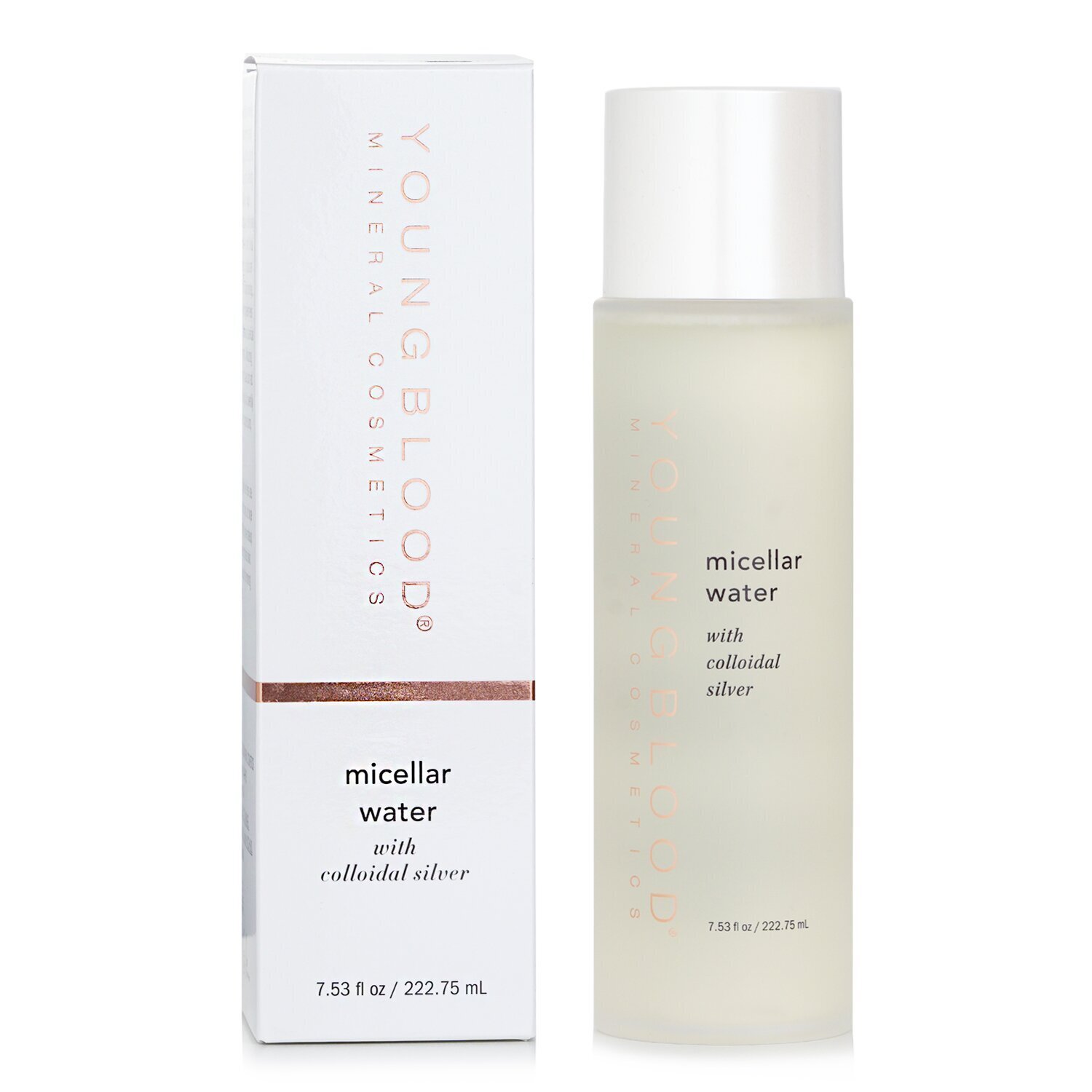 Youngblood’s Micellair Water met Colloïdaal Zilver zorgt voor een perfect gereinigde, zachte en soepele huid. Colloïdaal zilver helpt bij het ontgiften, zuiveren en revitaliseren van de huid, waardoor deze vrij blijft van microbiële stoffen en onzuiverheden. Perfect voor mensen met een ultragevoelige huid. Verrijkt met limoenboombloesem-, grapefruit- en komkommerextracten die helpen kalmeren en hydrateren, terwijl micellaire moleculen de huid reinigen. Deze verfrissende citrusformule stimuleert onmiddellijk en creëert een echte trifecta van frisse huid die make-up reinigt, tonifieert en verwijdert zonder strak of droog te worden. Micellair water bestaat uit micellen (minuscule parels van reinigende oliemoleculen) die in water zijn gesuspendeerd en die vuil, olie en make-up van het gezicht verwijderen zonder af te spoelen. Door deze ingrediënten te combineren, werkt deze formule als reiniger, toner en reiniger in één. Netto 6,76 fl oz | 200 ml
