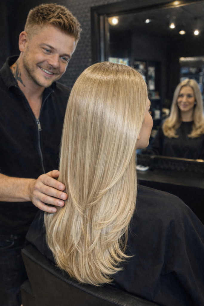 • De kleur-booster voor luie dagen Color Gloss is je shortcut. Je ploft in de stoel, krijgt een zachte, glanzende rinse, en bam — je haar ziet eruit alsof je er uren aan hebt besteed. Ideaal voor mensen die wél willen schitteren, maar niet hun hele agenda willen verbouwen.